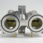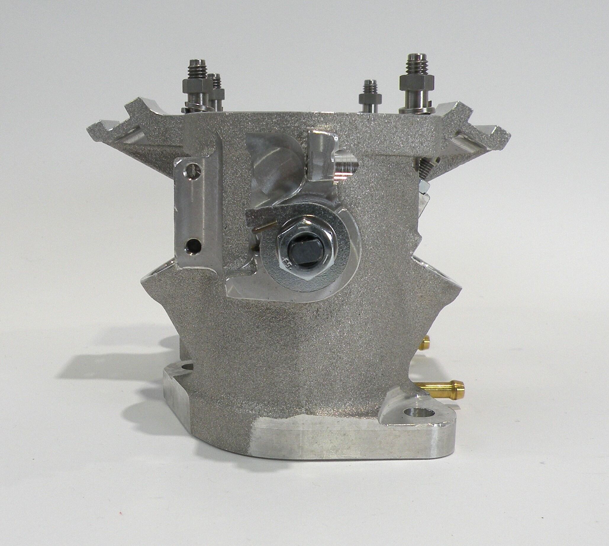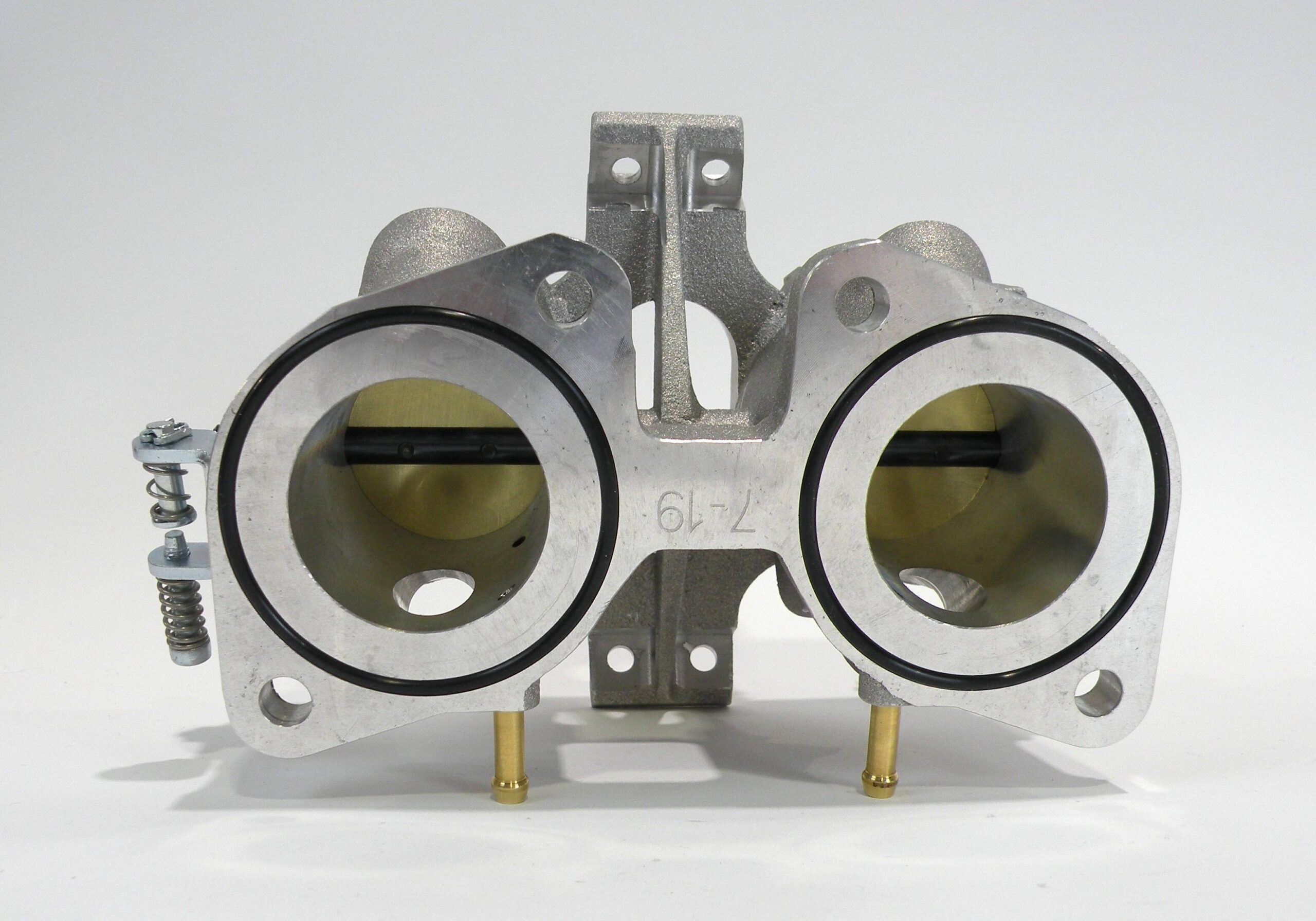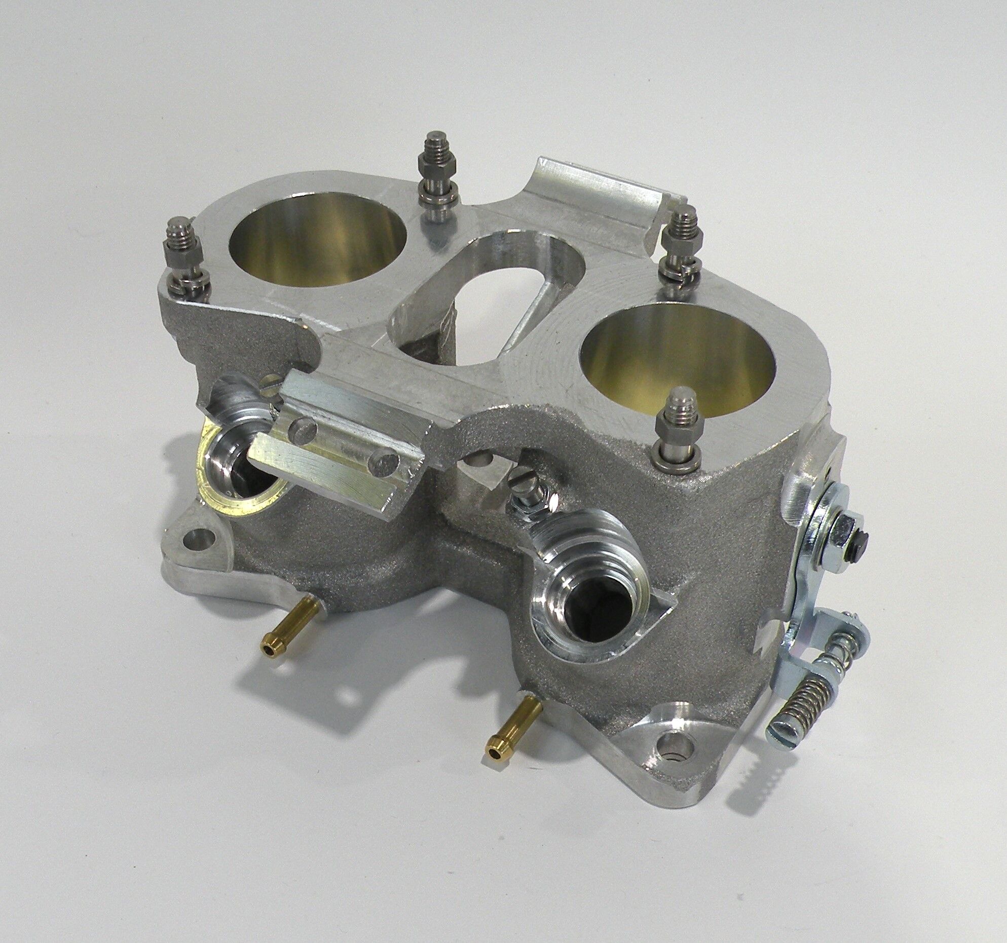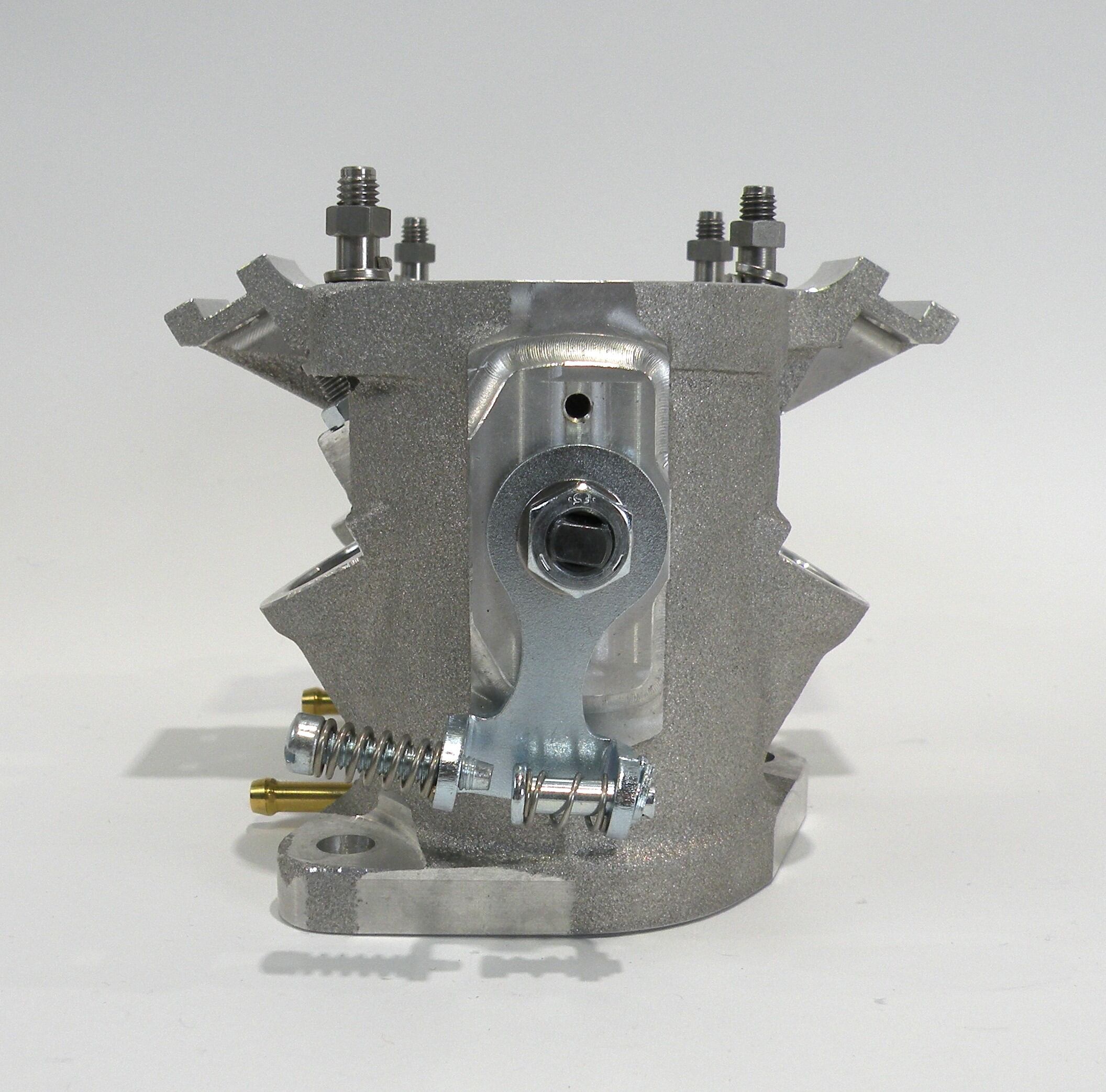 IDF throttle bodies are compact 2BBL units equally at home on a V8 and a VW or Porsche air cooled 4 cylinder. They are available in 40, 45 and 50mm bore sizes, with bosses for four injector mount positions. All four of the injector pockets are machined and plugs can be supplied to close off the unused ports. Each barrel has a bypass screw for idle speed and air flow adjustment. Units designated as “left hand” (LH) have provision to mount a TPS. Several different shaft linkage levers are available. O-rings are supplied to provide a reliable throttle to manifold seal. Borla produces compatible parts to complete an IDF installation such as fuel rails, fuel injectors, air horns, throttle position sensors and fuel pressure regulators.