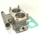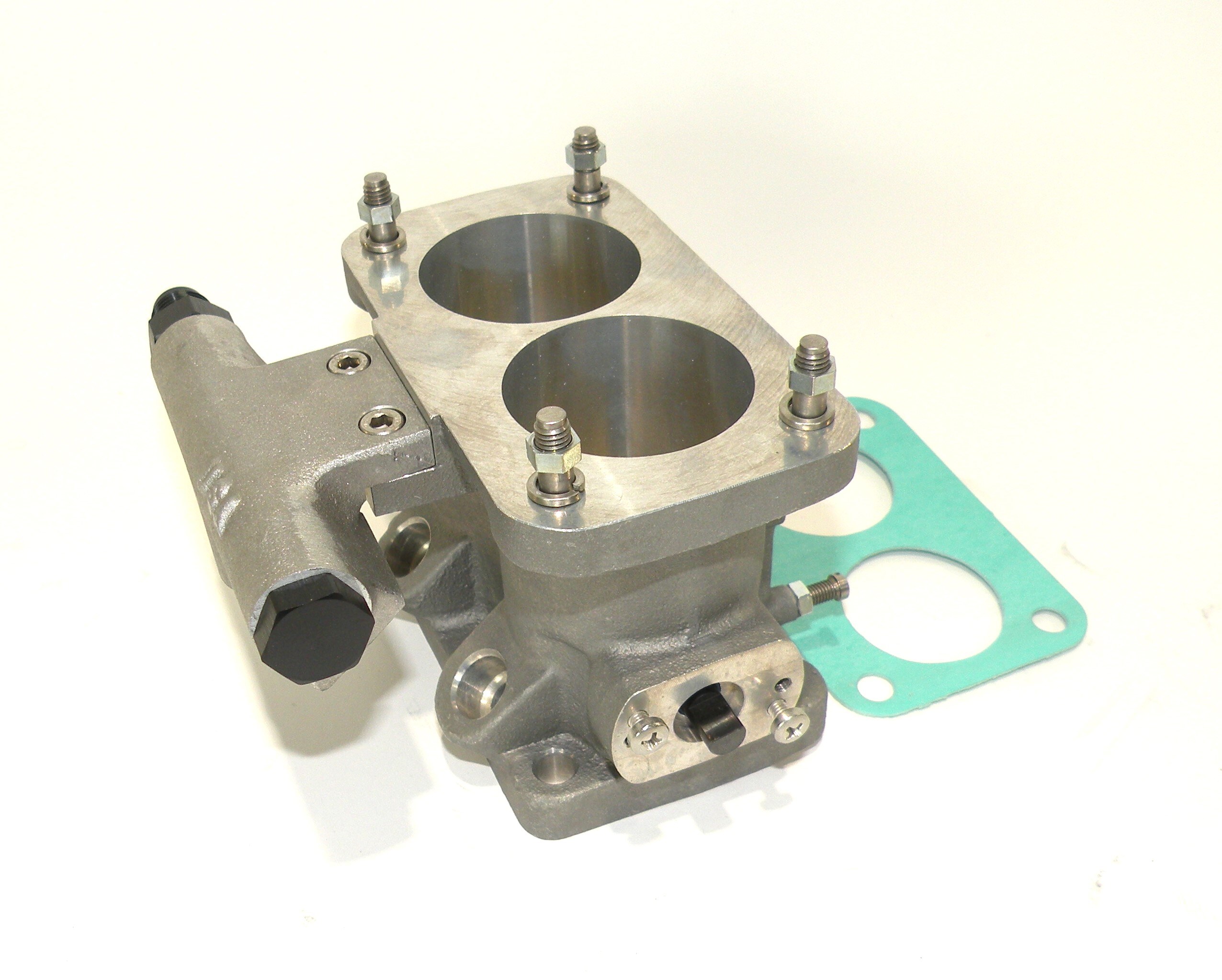 This Borla Induction throttle series is a direct replacement for the DCNF carburetors fitted to Ferrari, Maserati, and Aston Martin, in addition to having a number of aftermarket applications. The unit is extremely compact with barrel centers at 48mm and an overall height of 86mm. The manifold mounting and air cleaner flanges are identical to the DCNF carburetor. Each barrel has an air by-pass screw. The fuel rail has integral mounts and AN-6 threads, and is supplied with the unit. The rail and throttle accept a Bosch type EV14 standard length injector. The left hand unit incorporates a shaft with a single 5/16″ D-drive and mounting pad for throttle position sensor part number 206288. Several alternate shaft linkage levers are available for series or parallel applications.