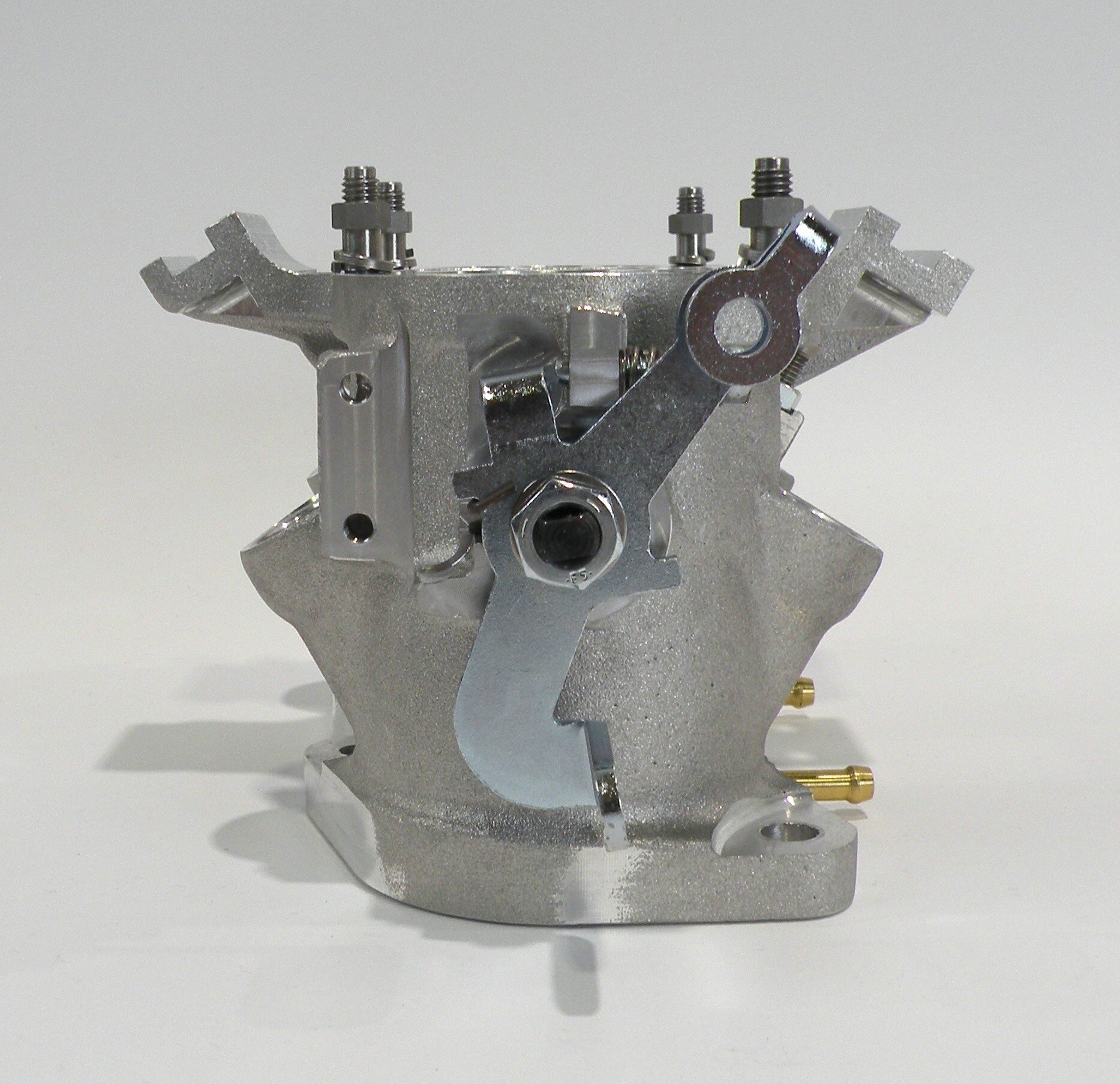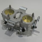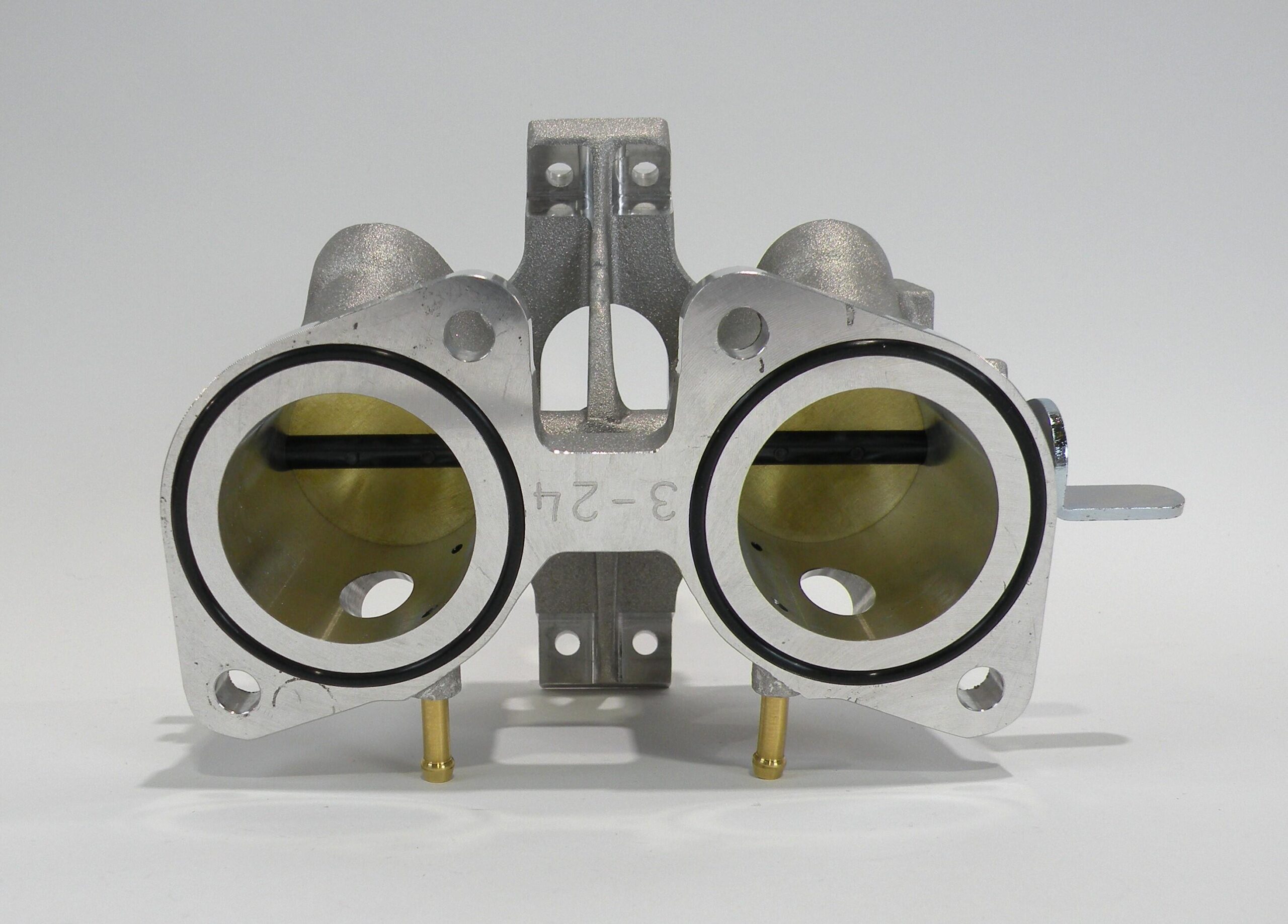 IDF throttle bodies are compact 2BBL units equally at home on a V8 and a VW or Porsche air cooled 4 cylinder. They are available in 40, 45 and 50mm bore sizes, with bosses for four injector mount positions. All four of the injector pockets are machined and plugs can be supplied to close off the unused ports. Each barrel has a bypass screw for idle speed and air flow adjustment. Units designated as “left hand” (LH) have provision to mount a TPS. Several different shaft linkage levers are available. O-rings are supplied to provide a reliable throttle to manifold seal. Borla produces compatible parts to complete an IDF installation such as fuel rails, fuel injectors, air horns, throttle position sensors and fuel pressure regulators.