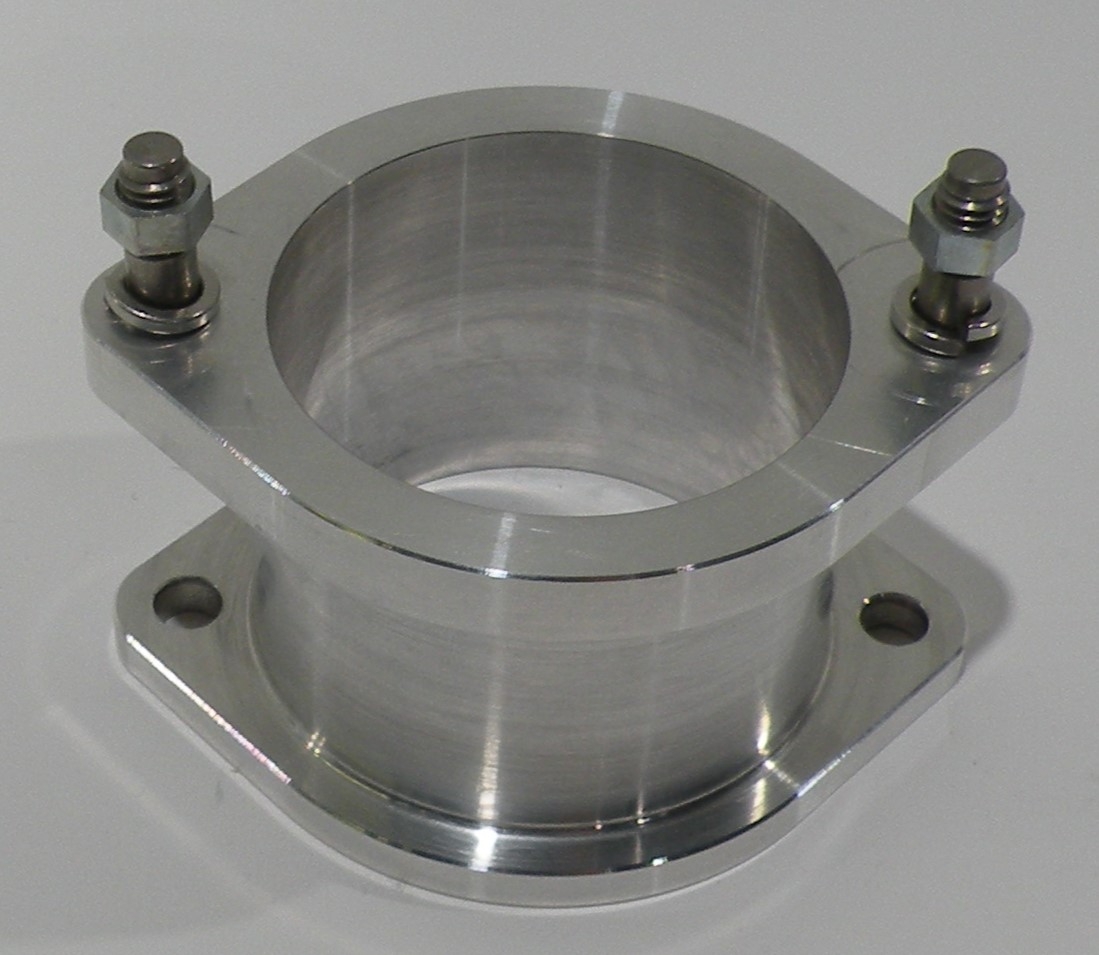 Extensions can be mounted on DCOE or IDF throttles to enable use of an airbox or air filter base plate. Overall length of 42mm is sufficient to clear the fuel rails on the throttle body. Machined from 6061 aluminum and available in a variety of bore sizes. Studs and mounting hardware are included.