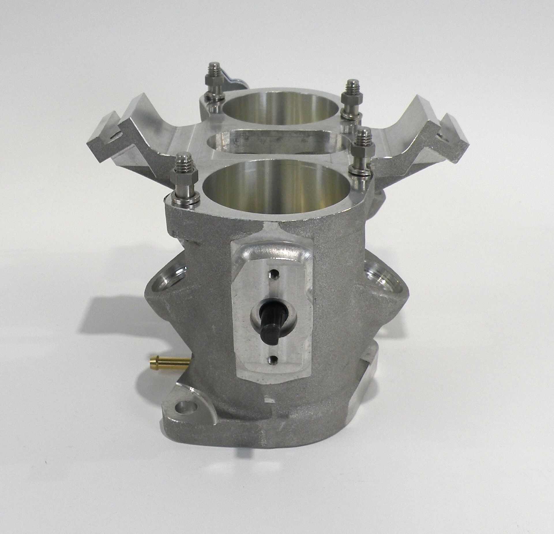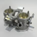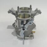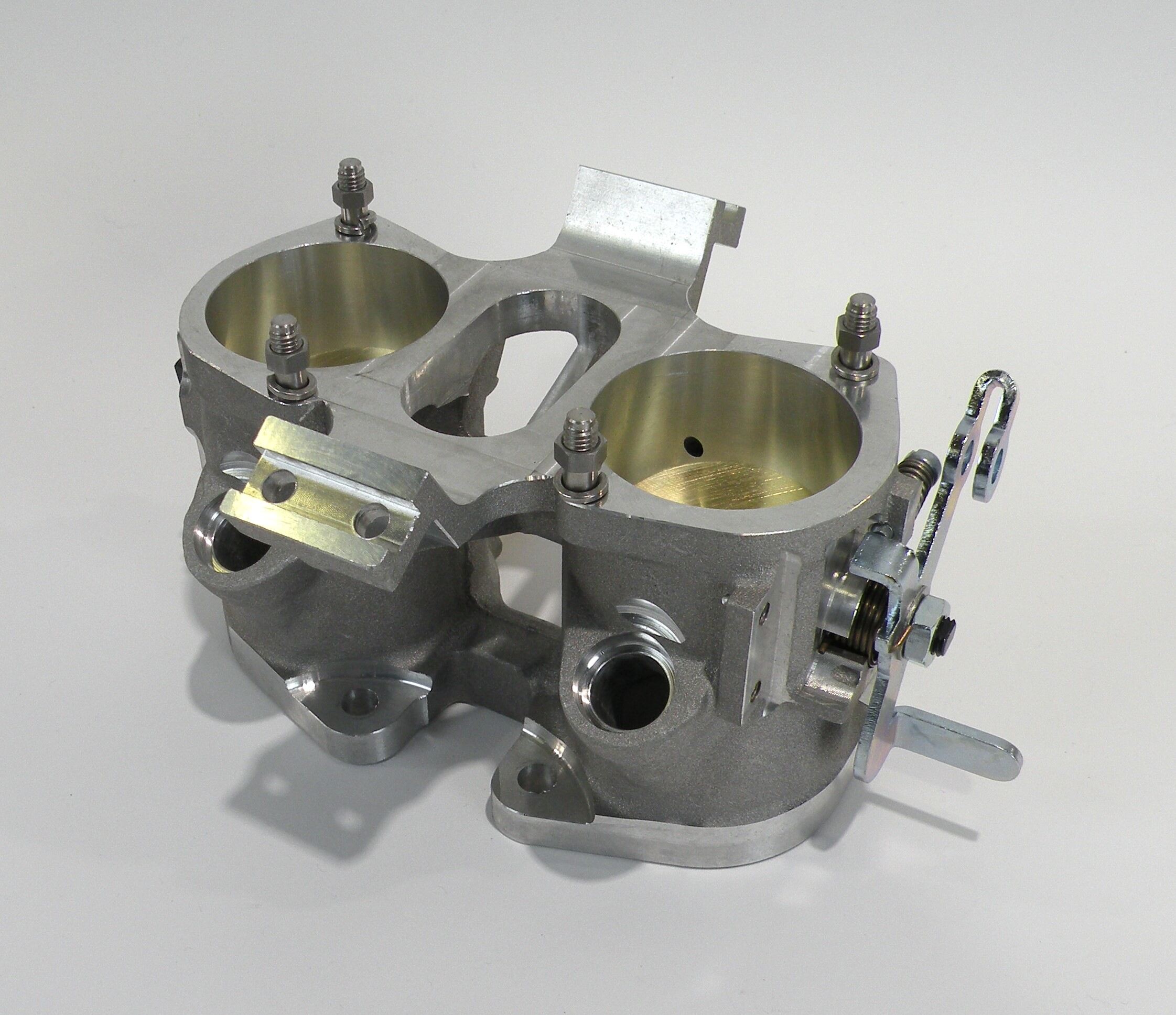 IDF throttle bodies are compact 2BBL units equally at home on a V8 and a VW or Porsche air cooled 4 cylinder. They are available in 40, 45 and 50mm bore sizes, with bosses for four injector mount positions. All four of the injector pockets are machined and plugs can be supplied to close off the unused ports. Each barrel has a bypass screw for idle speed and air flow adjustment. Units designated as “left hand” (LH) have provision to mount a TPS. Several different shaft linkage levers are available. O-rings are supplied to provide a reliable throttle to manifold seal. Borla produces compatible parts to complete an IDF installation such as fuel rails, fuel injectors, air horns, throttle position sensors and fuel pressure regulators.