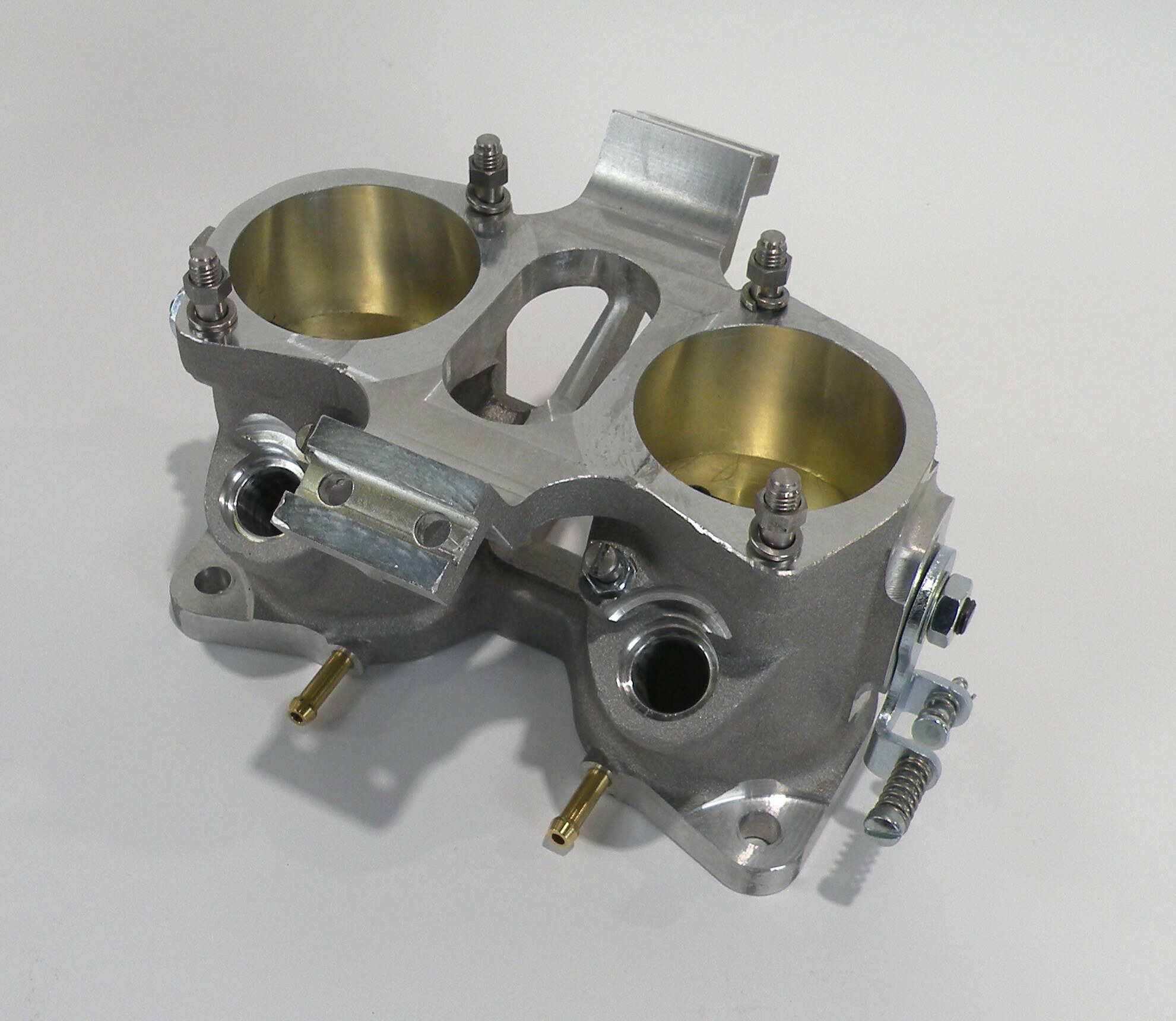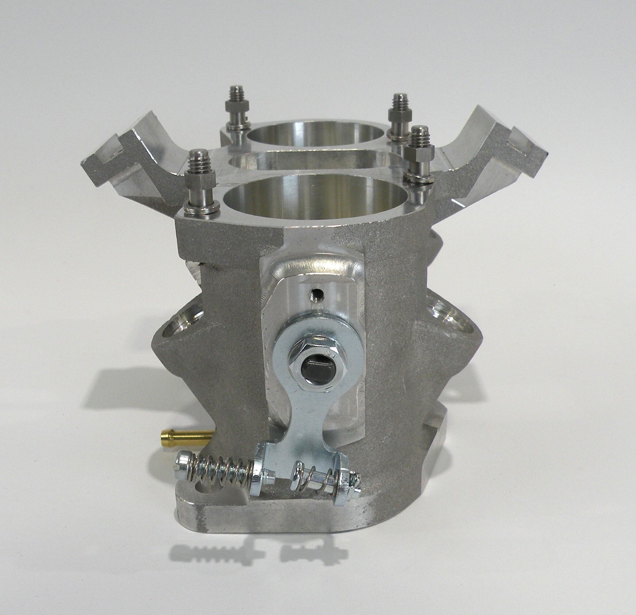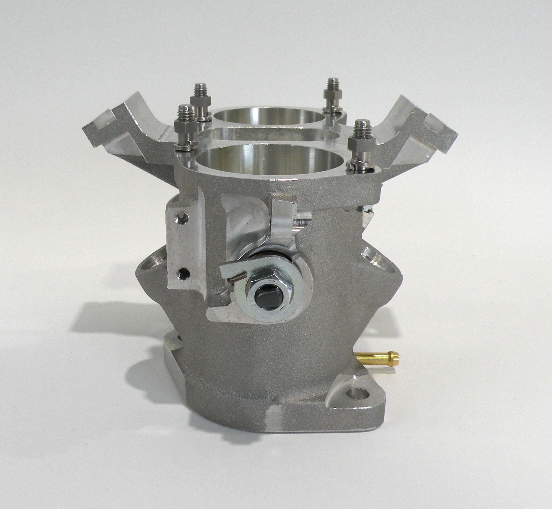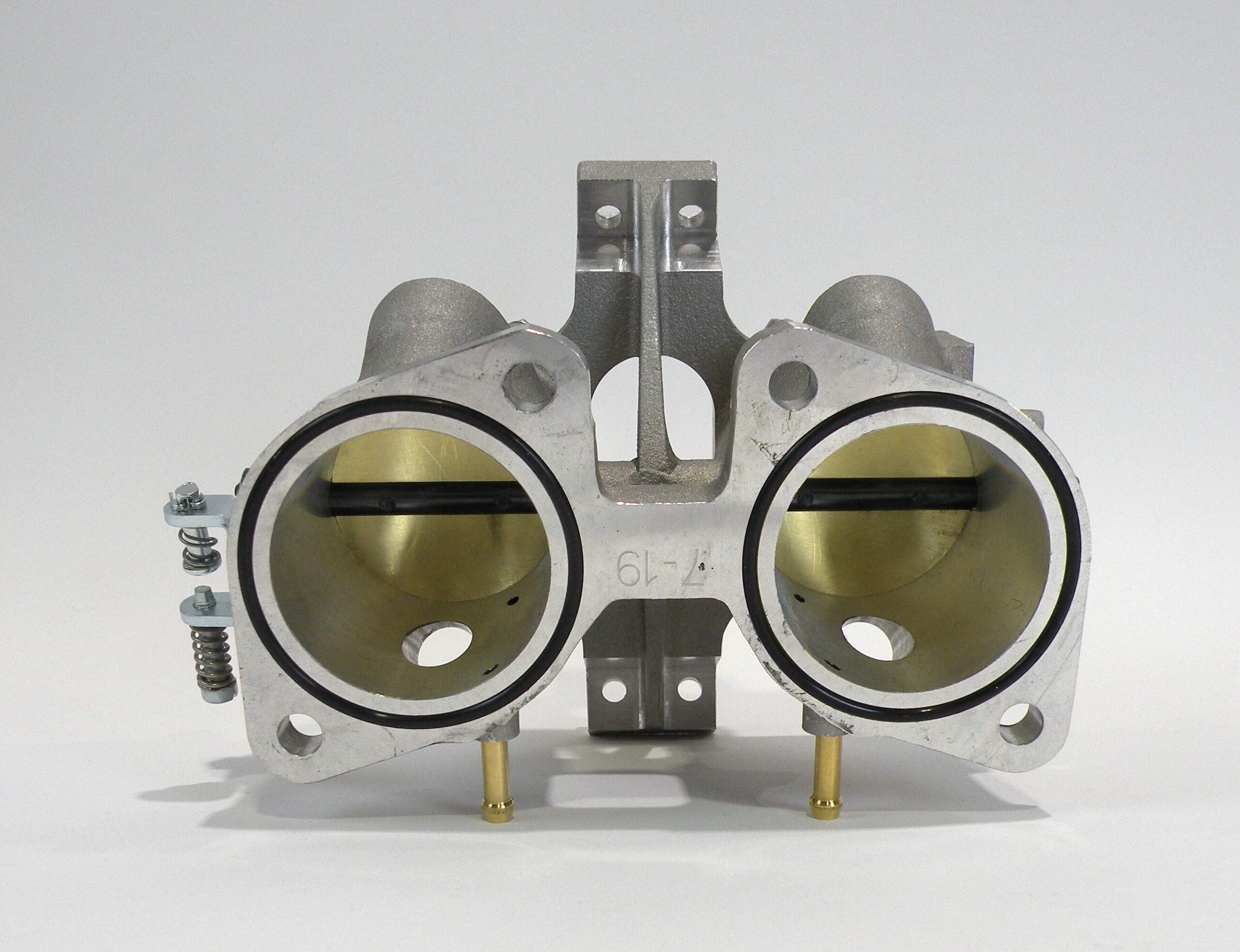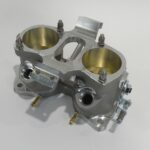 IDF throttle bodies are compact 2BBL units equally at home on a V8 and a VW or Porsche air cooled 4 cylinder. They are available in 40, 45 and 50mm bore sizes, with bosses for four injector mount positions. All four of the injector pockets are machined and plugs can be supplied to close off the unused ports. Each barrel has a bypass screw for idle speed and air flow adjustment. Units designated as “left hand” (LH) have provision to mount a TPS. Several different shaft linkage levers are available. O-rings are supplied to provide a reliable throttle to manifold seal. Borla produces compatible parts to complete an IDF installation such as fuel rails, fuel injectors, air horns, throttle position sensors and fuel pressure regulators.