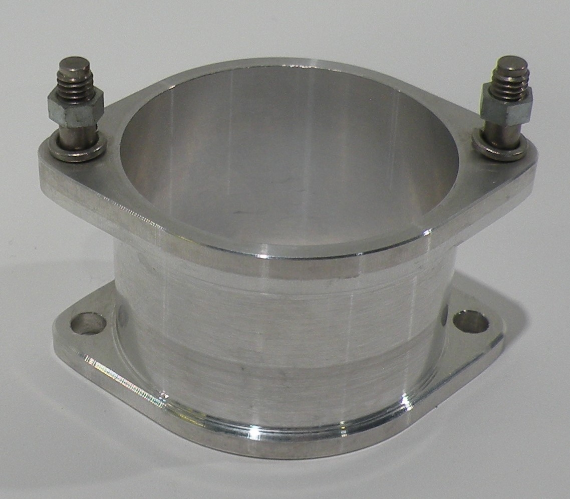 Extensions can be mounted on DCOE or IDF throttles to enable use of an airbox or air filter base plate. Overall length of 42mm is sufficient to clear the fuel rails on the throttle body. Machined from 6061 aluminum and available in a variety of bore sizes. Studs and mounting hardware are included.