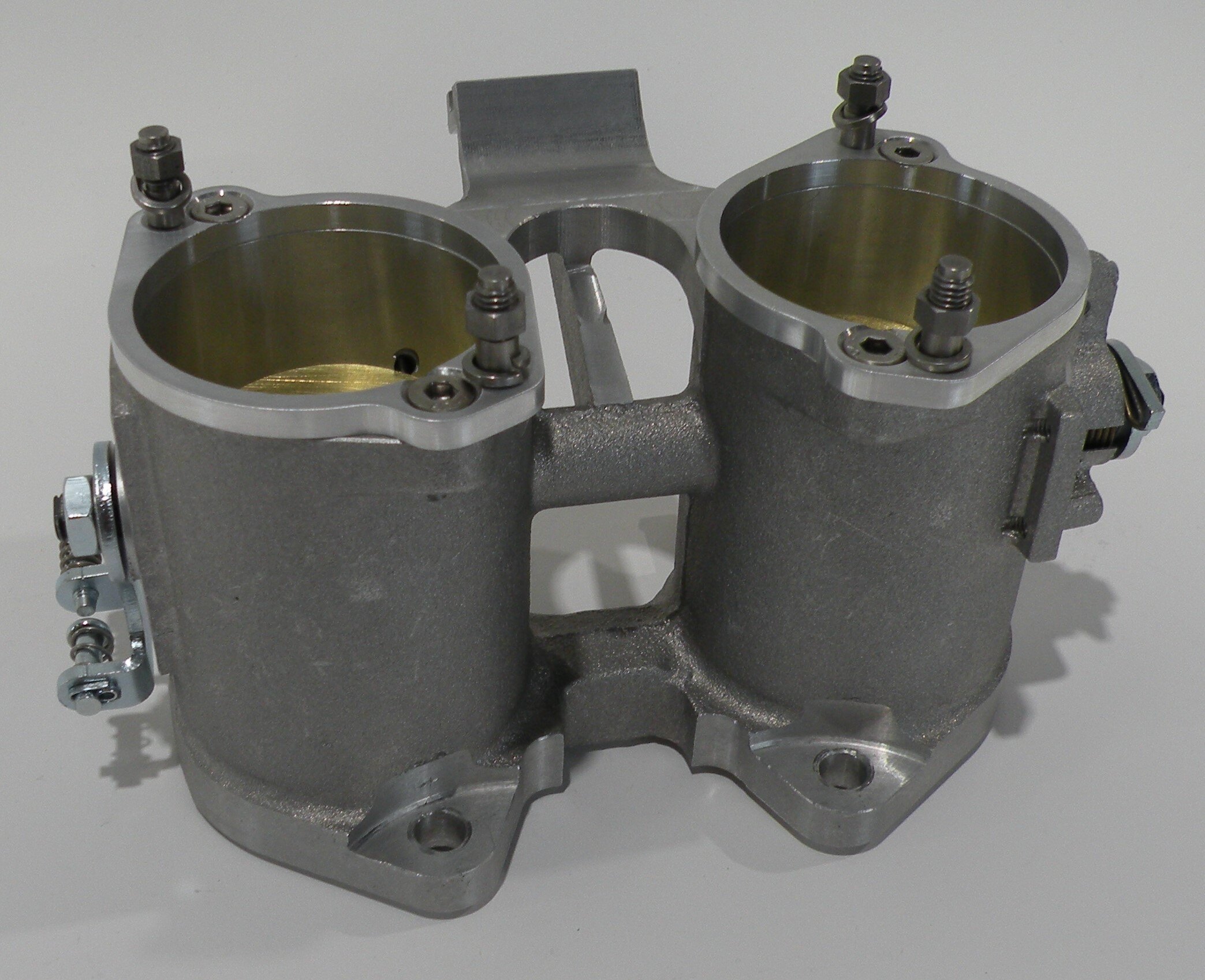 These throttles are designed to be direct replacements for the following sidedraft carburetors: Weber DCO and DCOE, Dellorto DHLA, Mikuni PHH, SK Racing, and Solex ADDHE. They are available in 40, 45, 48, 50 and 55mm bore sizes and come with adjustable center compensating linkage to join adjacent throttles. Each barrel has a bypass screw for idle speed and air flow adjustment. Units designated as “left hand” (LH) have provision to mount a TPS. O-rings are supplied to provide a reliable throttle to manifold seal. Borla produces compatible parts to complete the installation such as fuel rails, fuel injectors, air horns, throttle position sensors and fuel pressure regulators.