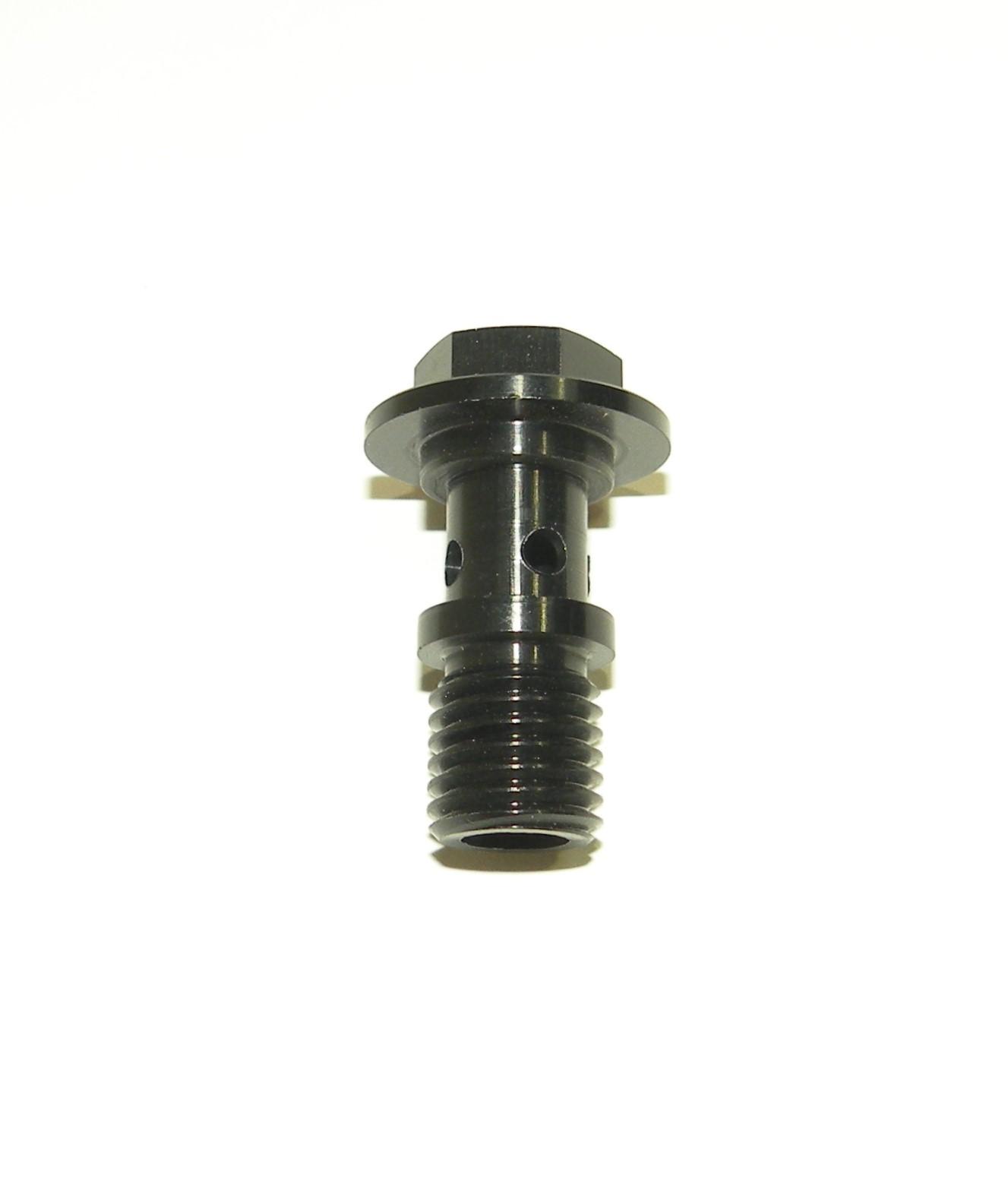 Aluminum bolt used with banjo fuel fitting to fit our Weber throttles. Thread 12×1.5mm with black anodized finish.