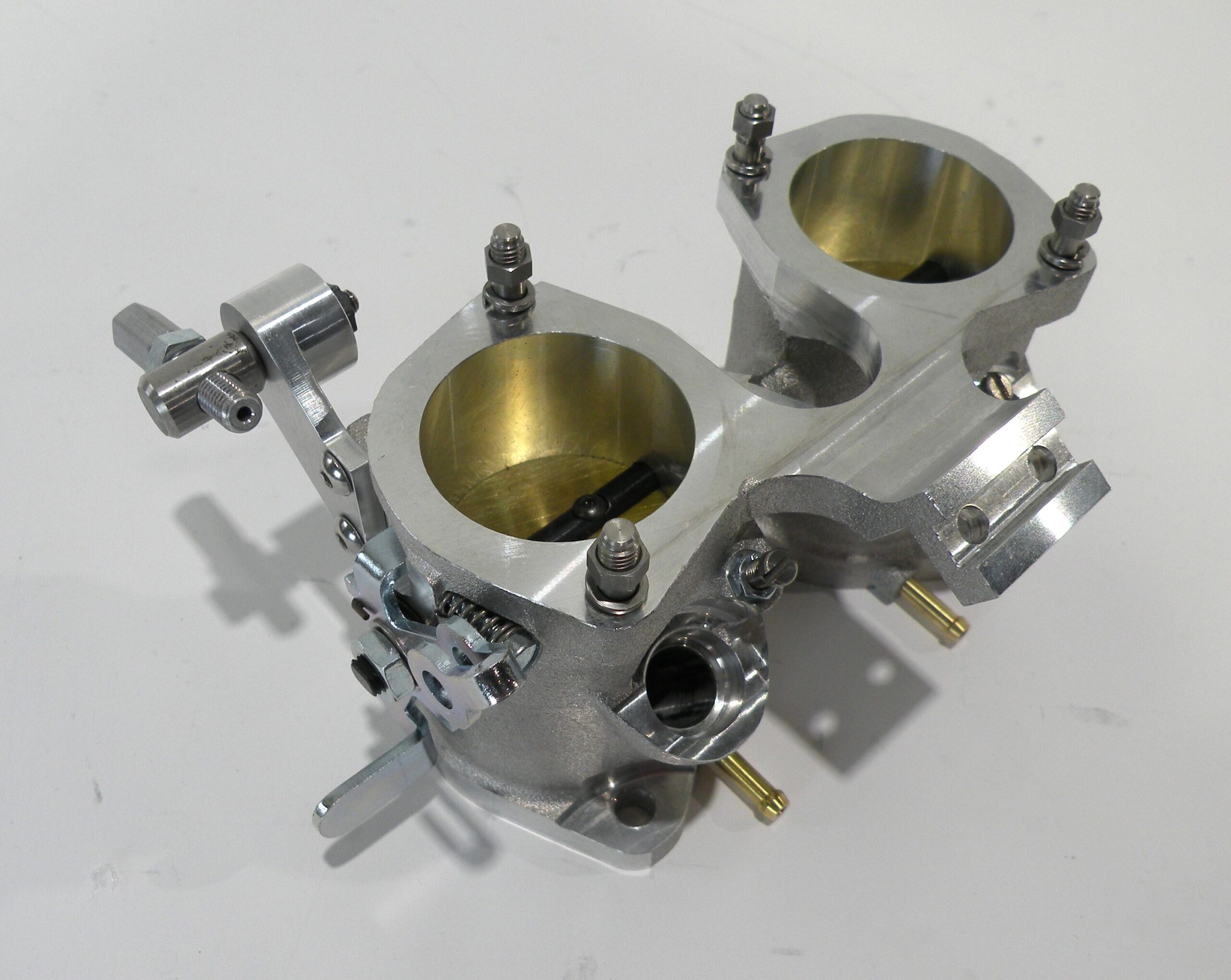This bracket, swivel and adjuster provides attachment for a throttle cable to actuate a DCOE throttle. Part 204030 is for the TPS throttle and 204052 is for the non-TPS throttle in the center position of a 6-cylinder application.