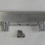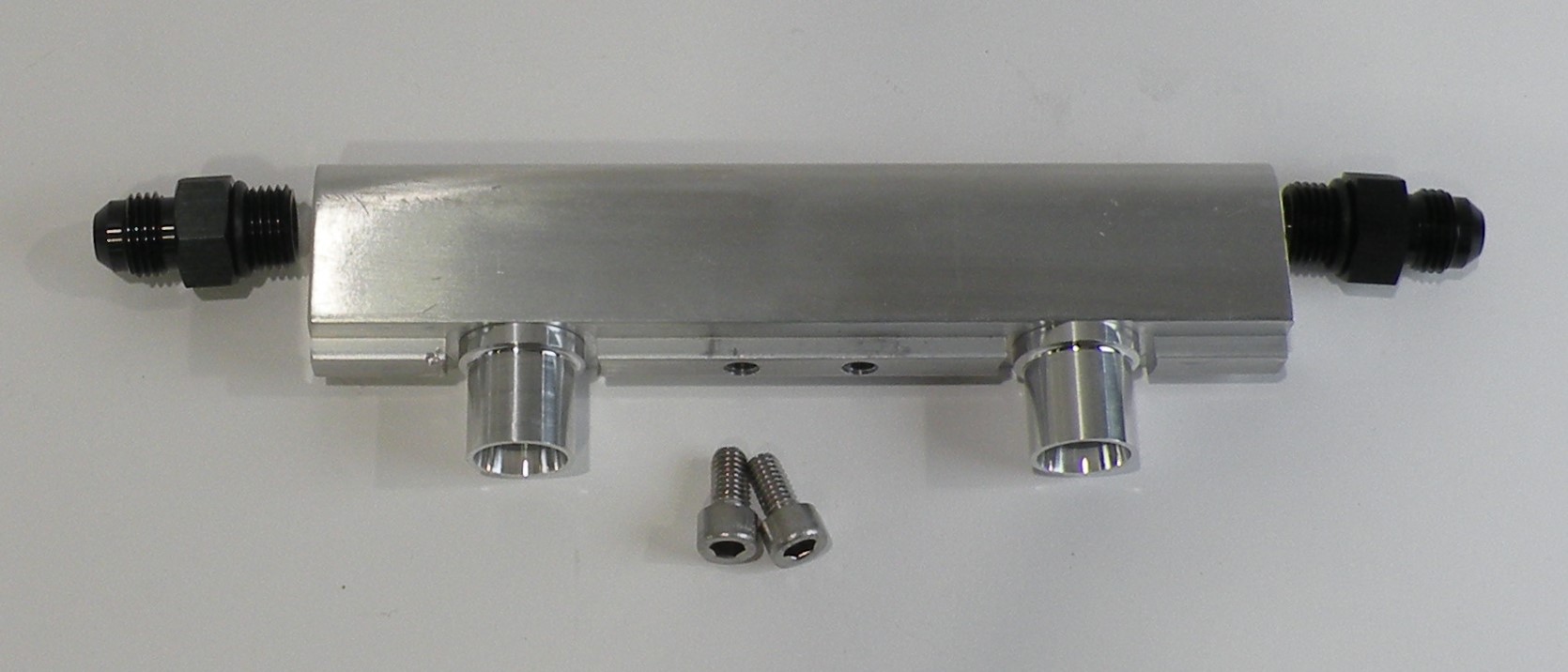 Natural finish aluminum single double threaded fuel rail for mounting to Borla DCOE or IDF throttles. For use with EV14 style injectors (52.2mm between injector O-rings). Includes -6 AN fittings and mounting hardware.