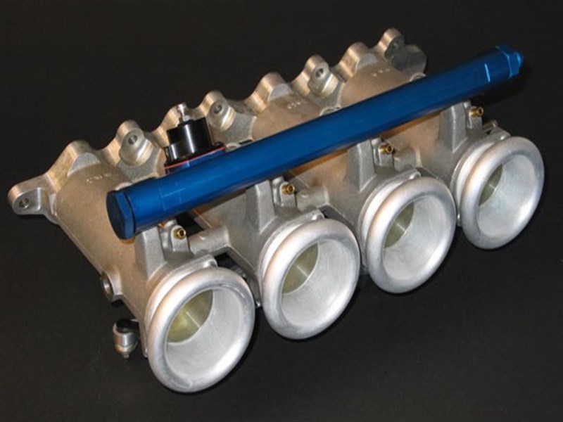 Designed with the serious motorsport competitor in mind, this kit brings the advantages of individual runner performance to many of today’s high output engines. These units breathe through four throttles into a runner designed to be a straight shot to the cylinder head where it joins the port at the optimal angle for maximum flow. All kits include adjustable fuel pressure regulator, fuel rail, billet linkage, full radius air horns and throttle position sensor (TPS). Supplied without injectors but fuel rails to accept several different types of injectors are available.