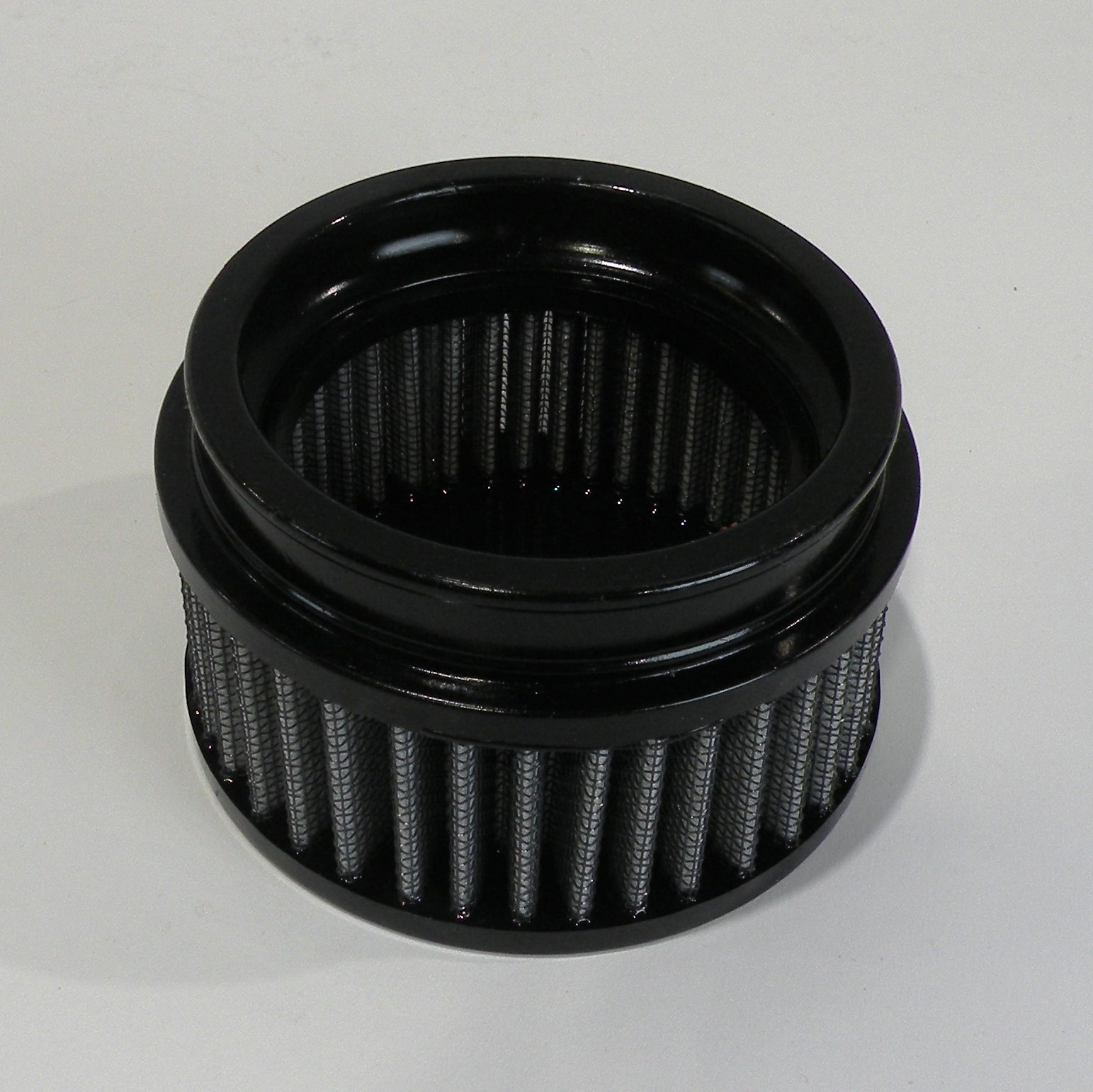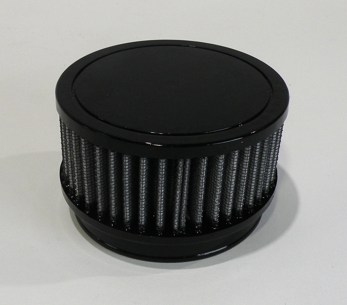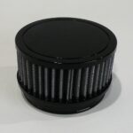 Our washable, reusable, high flow filters feature a layered, oil bath type, 1 3/8” tall cotton media engineered to improve airflow and capture contaminants. Designed specifically for 50mm airhorns with a custom fit for easy on/off scenarios whether it be go or show. Dimensions are 4” diameter with 1 7/8” installed height.