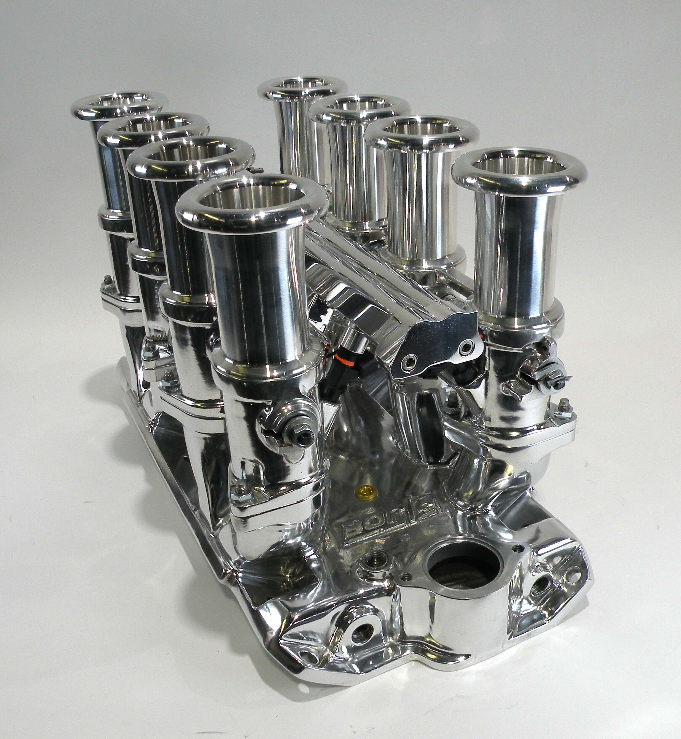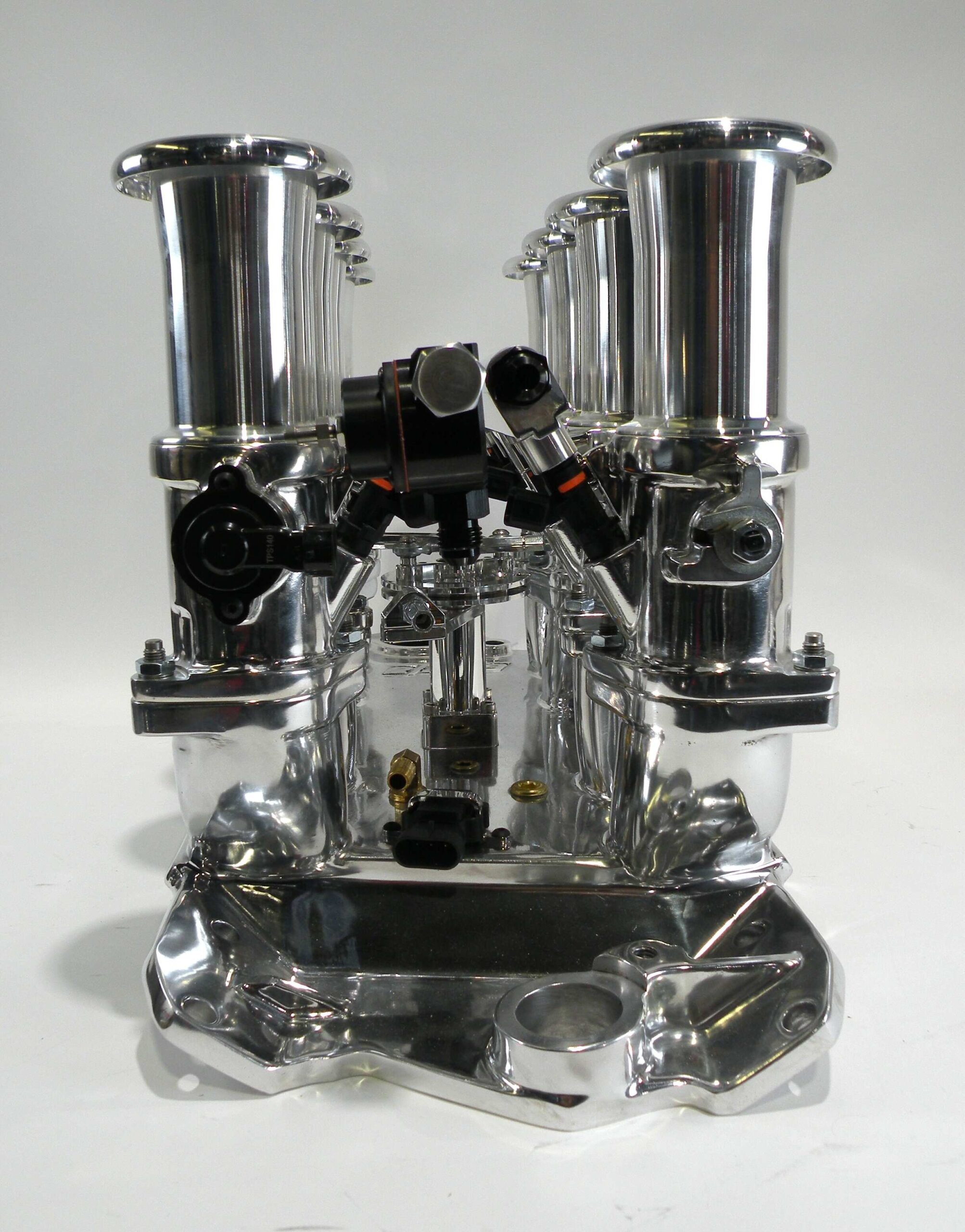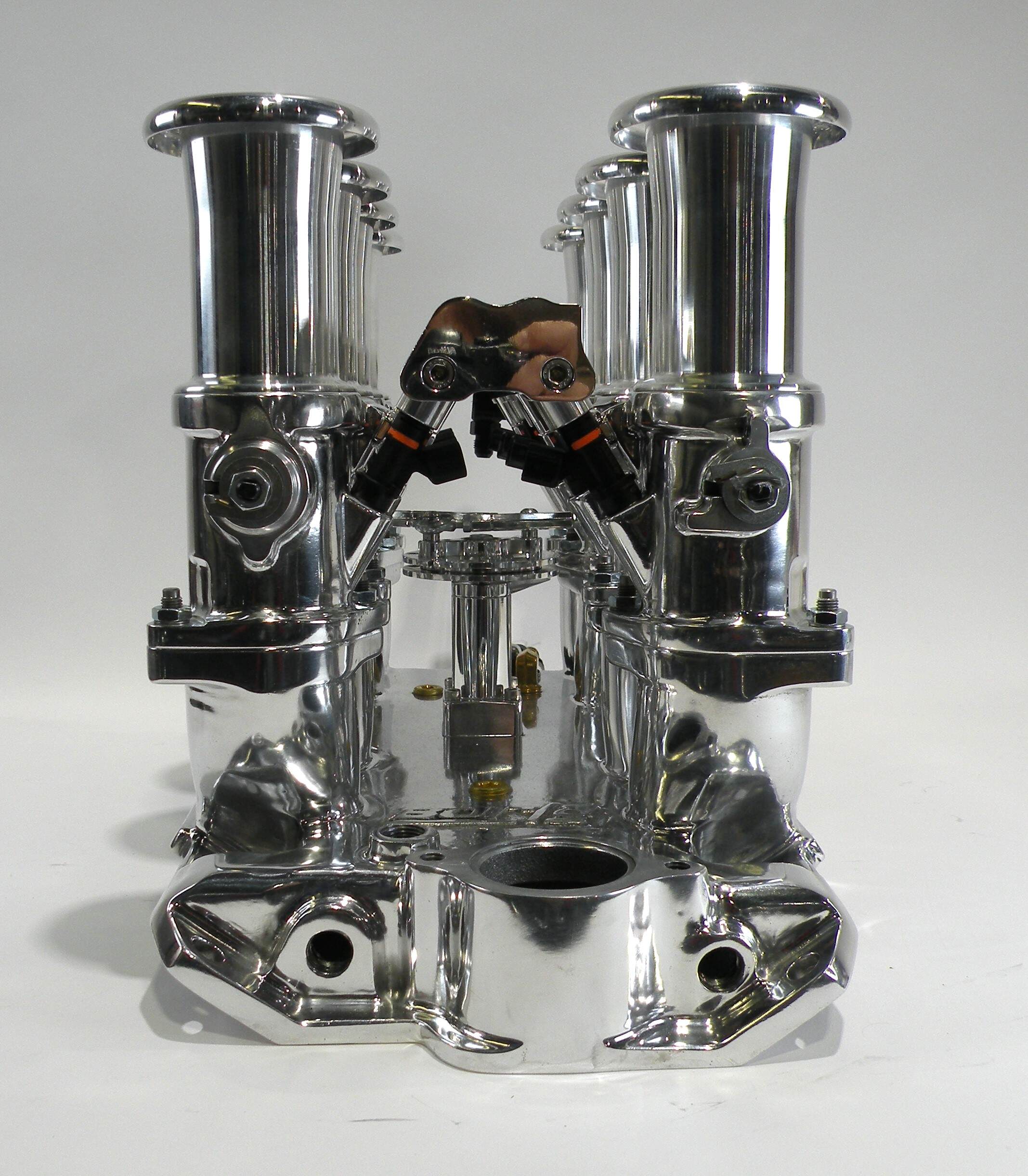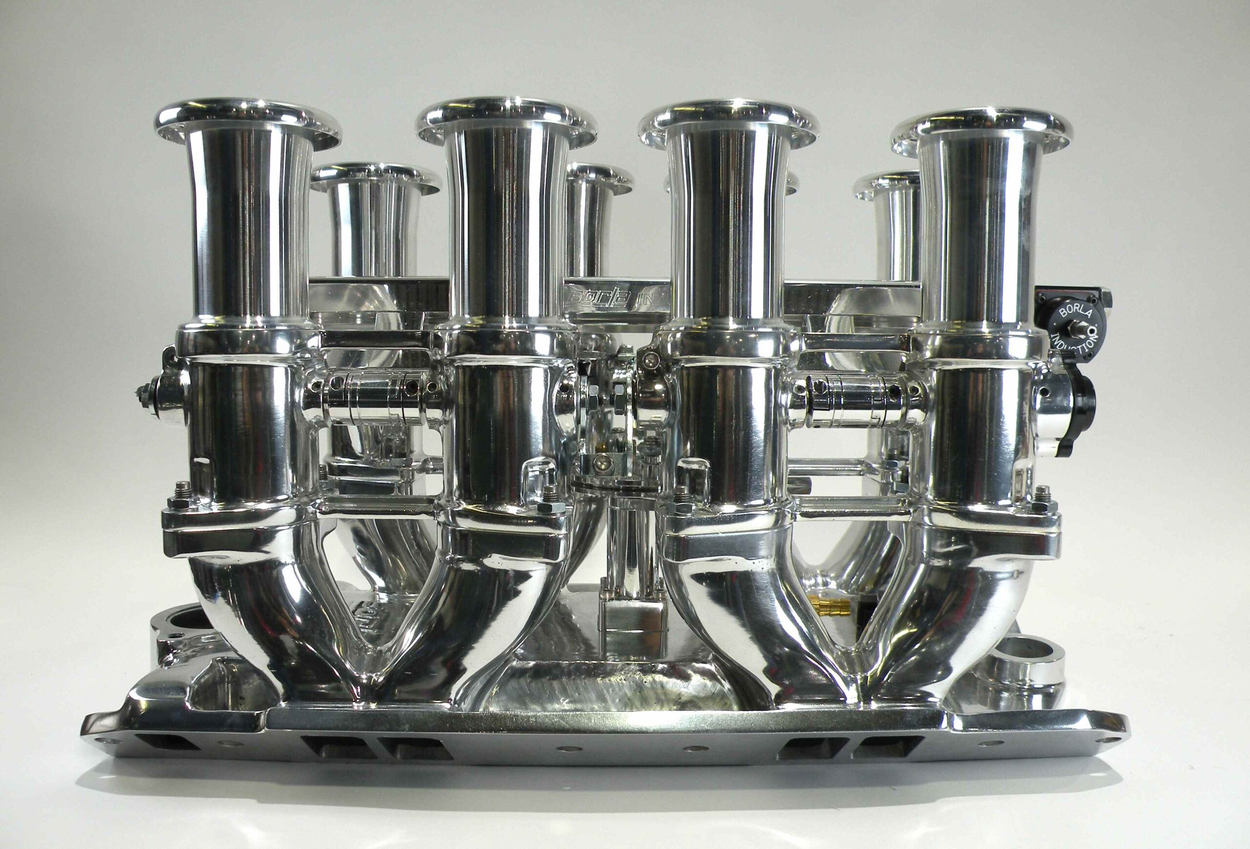 With this offering, our unique Borla 50mm throttle bodies utilizing discreetly hidden electronic injectors, and a cast aluminum manifold form the basis for an individual runner system that harkens back to the old mechanical fuel injection of early drag racing lore. The common plenum design provides for integrated MAP sensor, idle air control and PCV accommodation. Also included is the throttle position sensor, fuel rails with integrated fuel pressure regulator and our reputable precision calibrated linkage. These throttles have the option for different length airhorns ranging from 35 to 100mm to accommodate challenging under hood clearances. Linkage which provides for TV cable attachment is available and should be requested when the throttle system is ordered. This is needed if an automatic transmission such as 700R4 or 200R4 will be used.