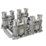 These Borla throttle body systems are fuel injection platforms pairing a retro “Weber look” of the 60’s & 70’s with modern performance and reliability. In fact, most well-seasoned aficionados have difficulty discerning our product from actual vintage carburation. This option for the Coyote engine has the throttles vertical for a traditional look. They offer the classic WOW-factor while eliminating the hassles of multiple carburation through the use of a common plenum manifold that integrates Idle air control, PCV accommodation and MAP sensor. Modern fuel injectors are concealed within the throttles which also include a throttle position sensor and are actuated via precision calibrated linkage.