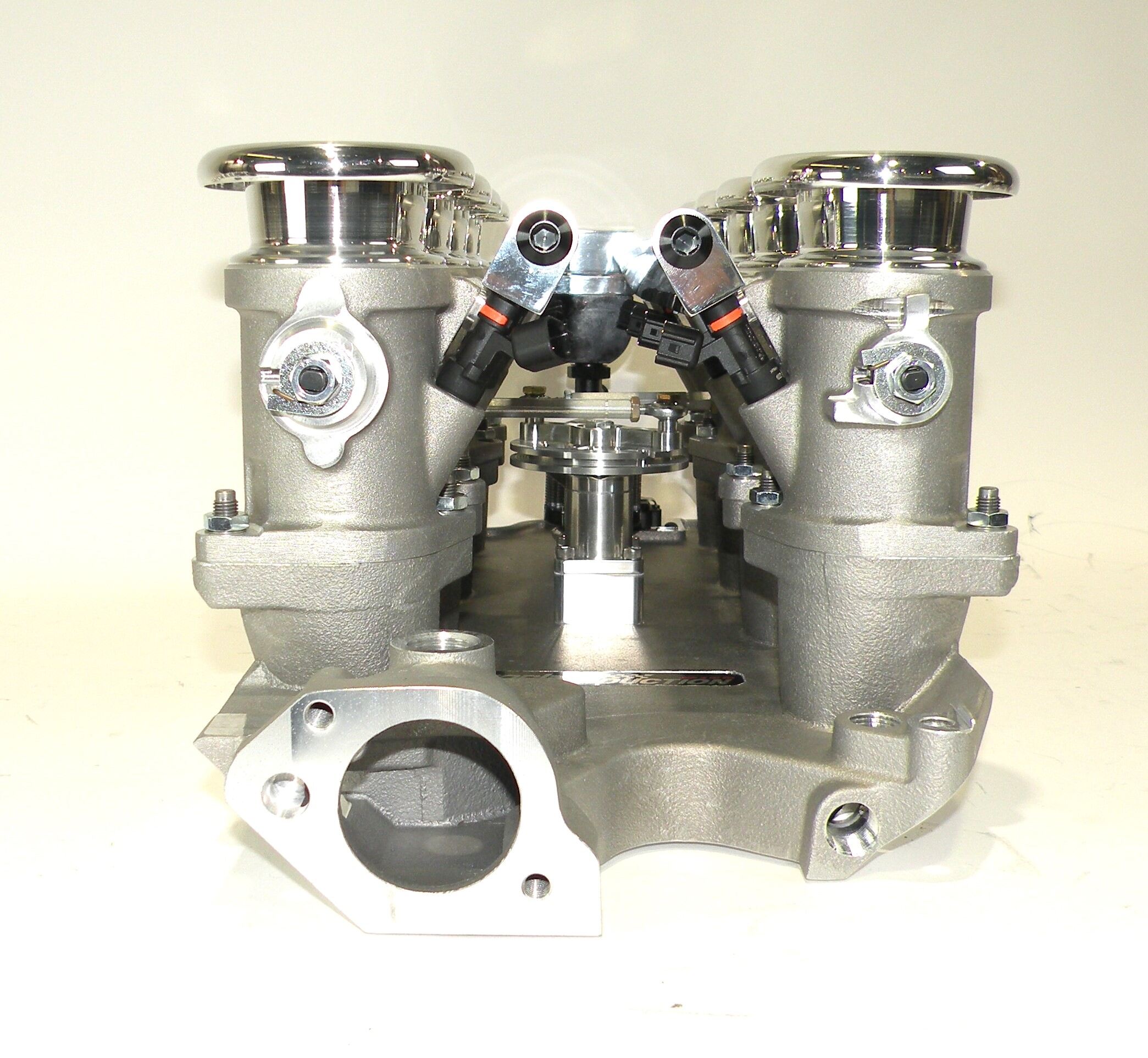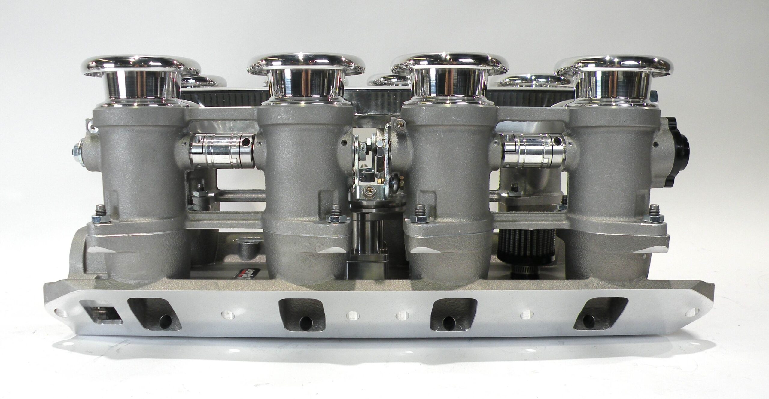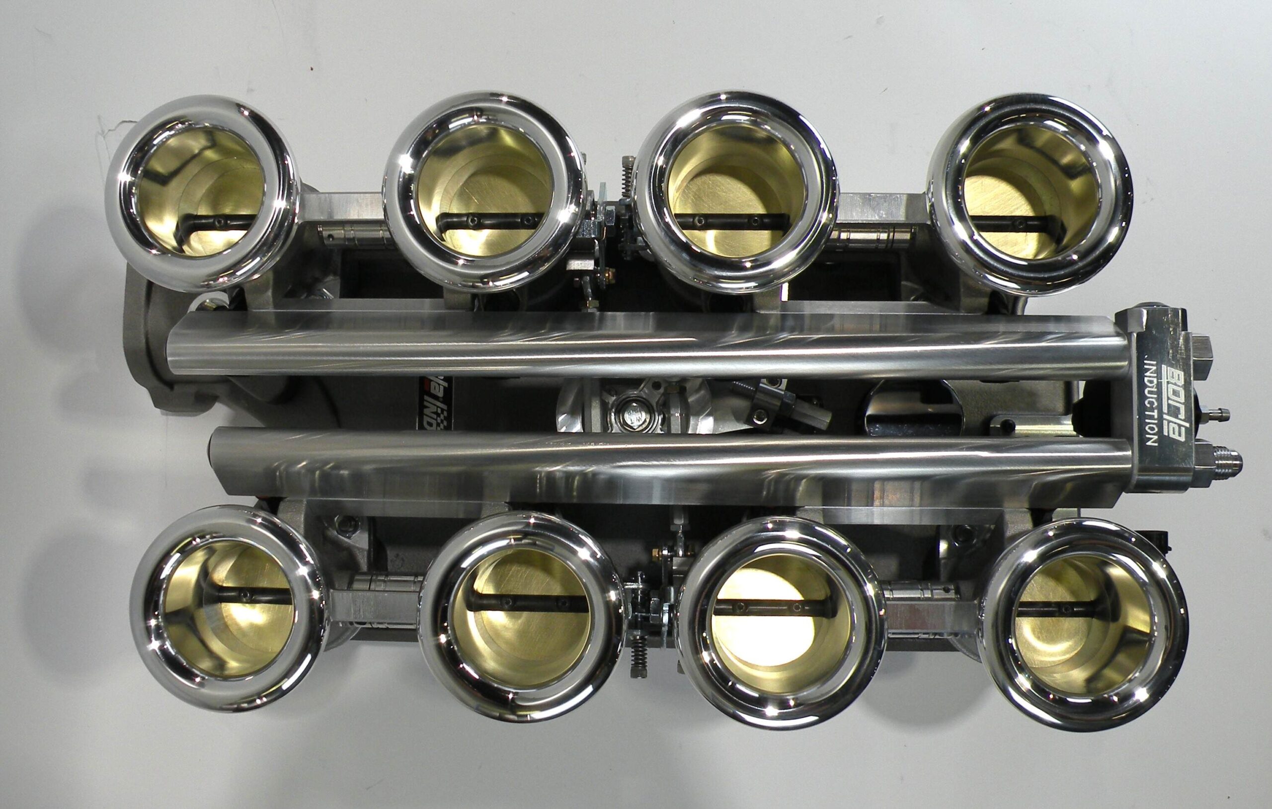 Specially designed for the 302 engine, this individual runner system harkens back to the old mechanical fuel injection of early drag racing lore. Our unique Borla 50mm throttle bodies on a cast aluminum common plenum manifold provides integrated MAP sensor, idle air control and PCV accommodation. Elegantly designed fuel rails have an integrated fuel pressure regulator and discreetly hidden electronic injectors. Our reputable precision calibrated linkage components combined with modern electronics, such as throttle position sensor and EV14 fuel injectors, lend the system to ease of tuning and drivability. These throttles have options for different length airhorns ranging from 35 to 100mm that will accommodate challenging under hood clearances. Special linkage which provides for TV cable attachment is available and should be requested when the throttle system is ordered. This is needed if an automatic transmission such as AOD will be used.