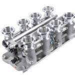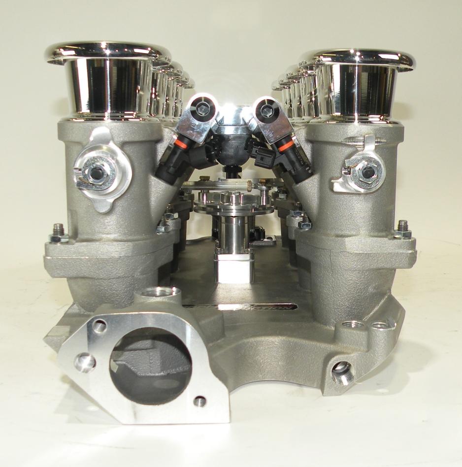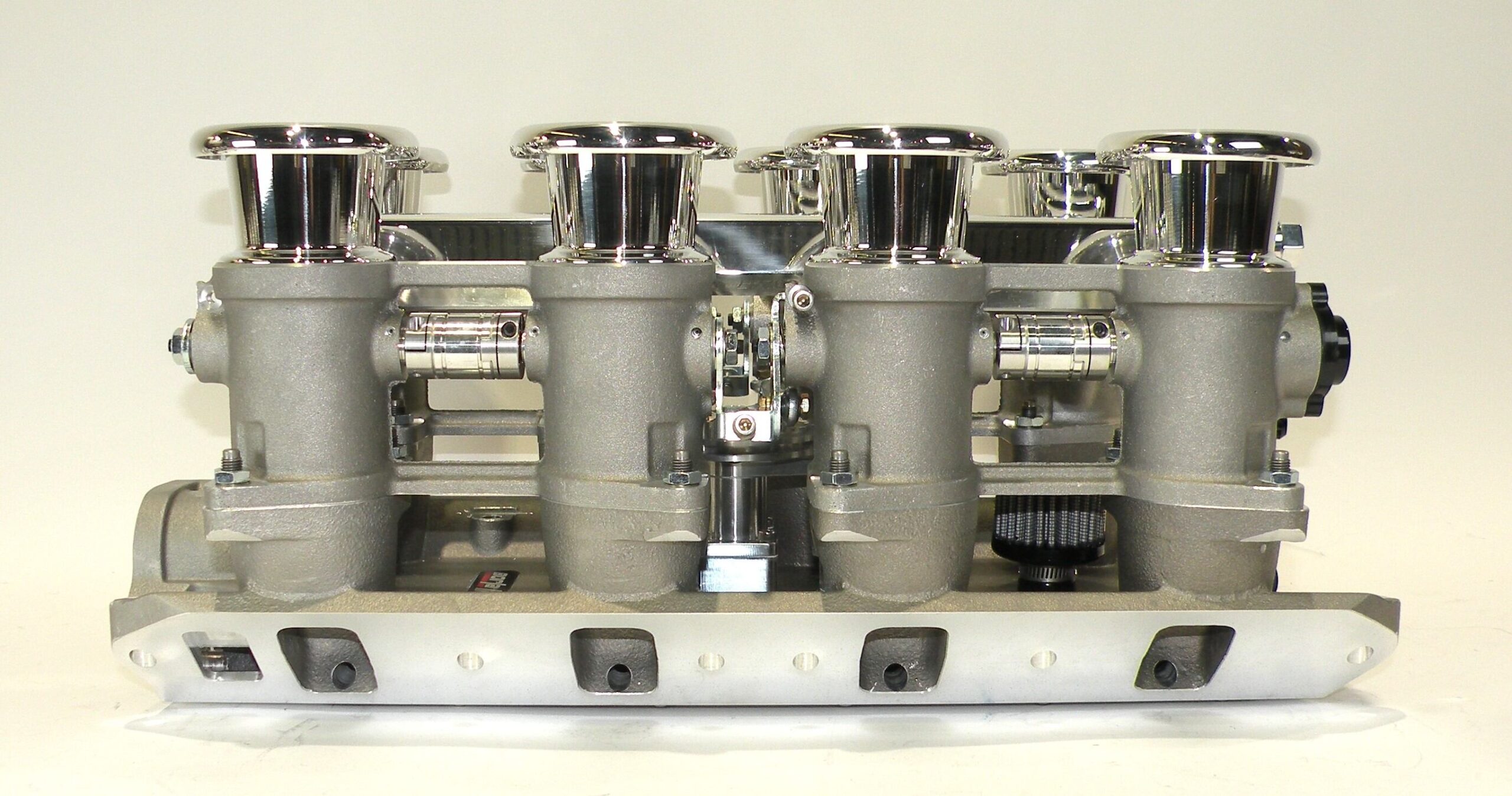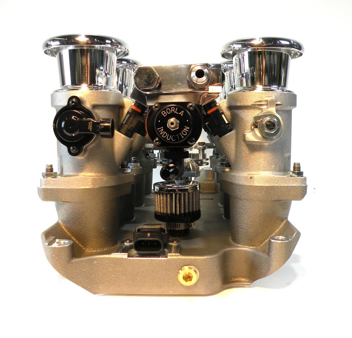 Specially designed for the 302 engine, this individual runner system harkens back to the old mechanical fuel injection of early drag racing lore. Our unique Borla 50mm throttle bodies on a cast aluminum common plenum manifold provides integrated MAP sensor, idle air control and PCV accommodation. Elegantly designed fuel rails have an integrated fuel pressure regulator and discreetly hidden electronic injectors. Our reputable precision calibrated linkage components combined with modern electronics, such as throttle position sensor and EV14 fuel injectors, lend the system to ease of tuning and drivability. These throttles have options for different length airhorns ranging from 35 to 100mm that will accommodate challenging under hood clearances. Special linkage which provides for TV cable attachment is available and should be requested when the throttle system is ordered. This is needed if an automatic transmission such as AOD will be used.