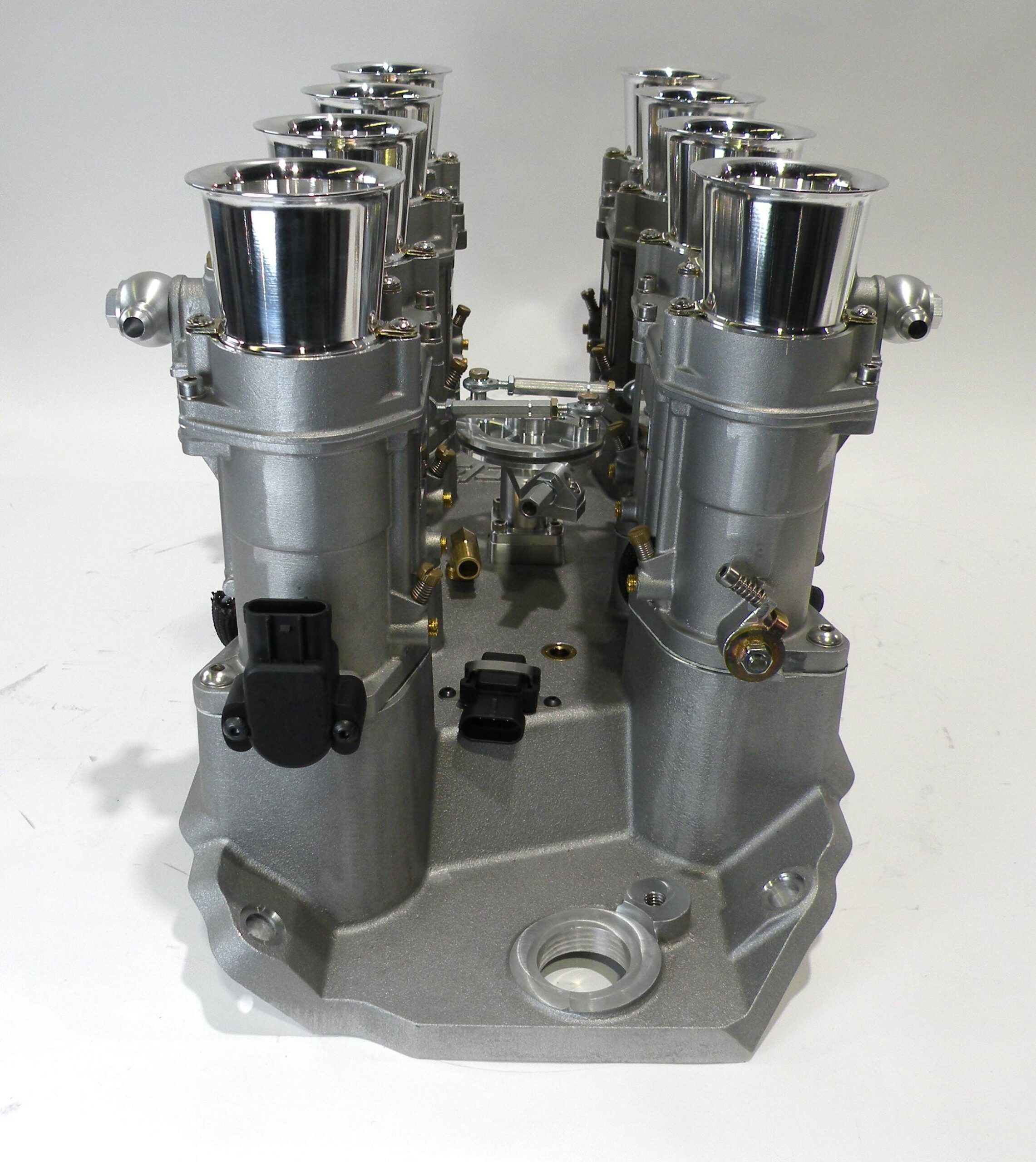 These Borla throttle body systems are fuel injection platforms pairing a retro “Weber look” of the 60’s & 70’s with modern performance and reliability. In fact, most well-seasoned aficionados have difficulty discerning our product from actual vintage carburation. They offer the classic WOW-factor while eliminating the hassles of multiple carburation through the use of a common plenum manifold that integrates Idle air control, PCV accommodation and MAP sensor. Modern fuel injectors are concealed within the throttles which also include a throttle position sensor and are actuated via precision calibrated linkage.